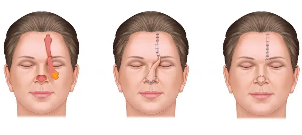 - Cancer removal: Nose reconstruction following cancer removal (e.g., Mohs surgery for skin cancer) may involve excision of the cancerous tissue followed by reconstruction of the nasal defect using local tissue flaps, skin grafts, or cartilage grafts from other areas of the body (e.g., ear or rib cartilage).
